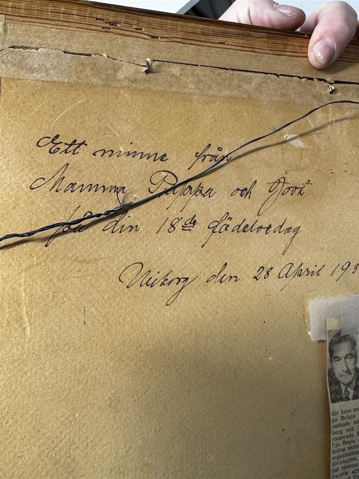 Kehyksissä on joitakin kulumisen merkkejä, mutta maalaus on hyvässä kunnossa.