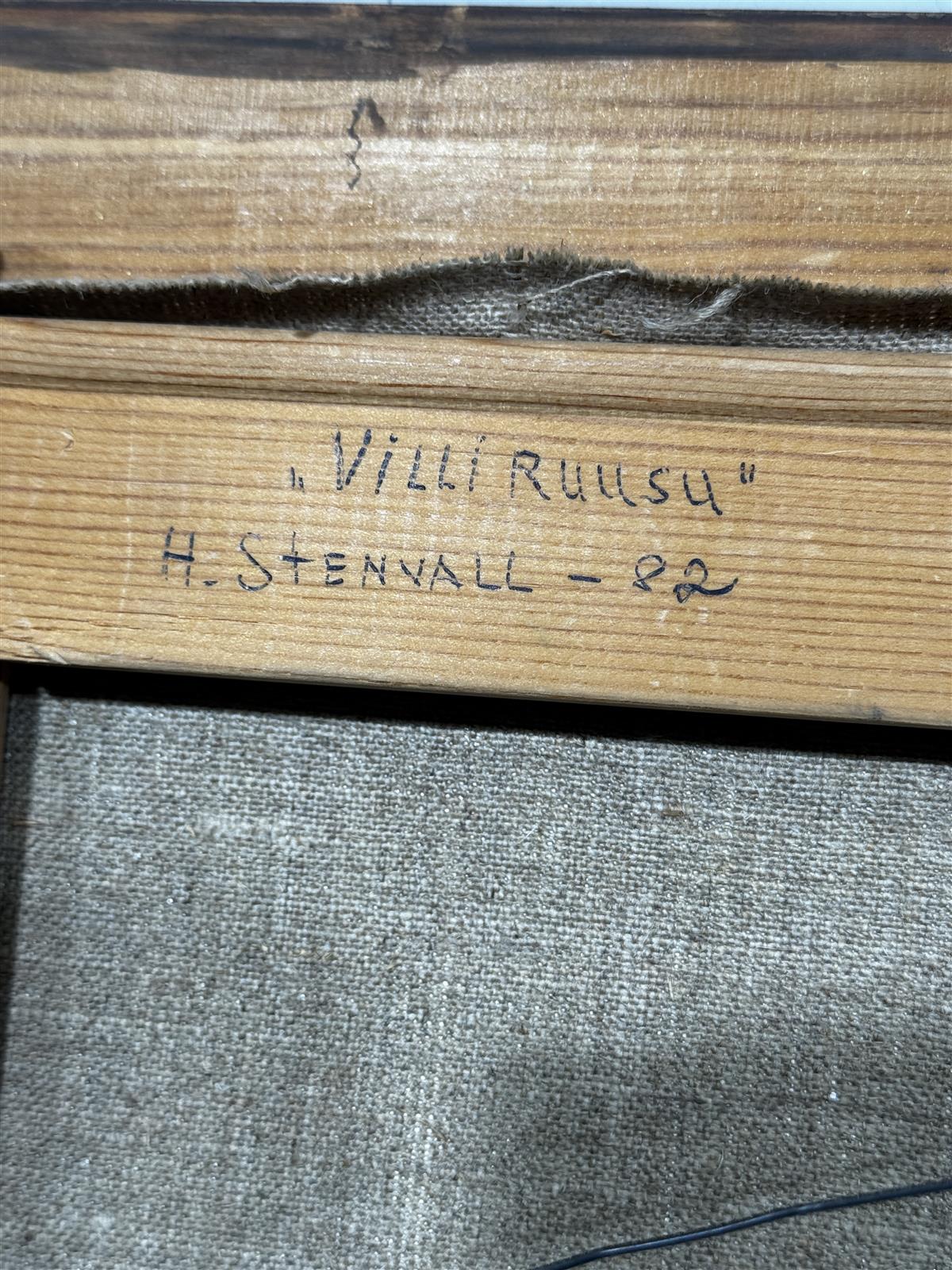 Öljyvärimaalaus, jossa on kuvattuna valkoisia ruusuja. Teoksen nimi on ’Villi Ruusu’ ja se on signeerattu H. Stenvall -82.