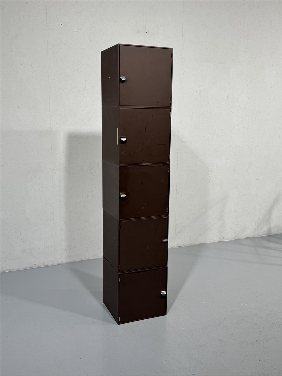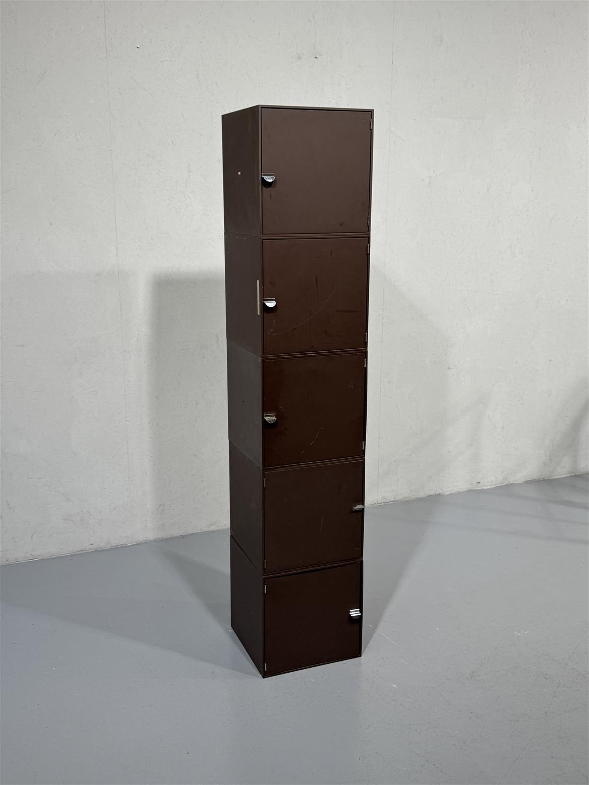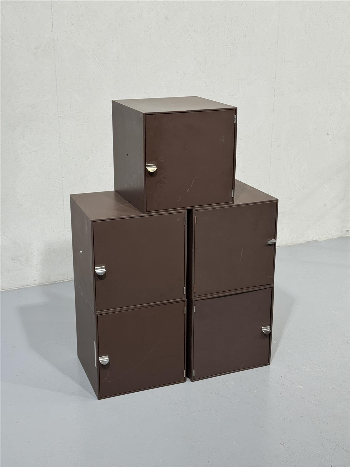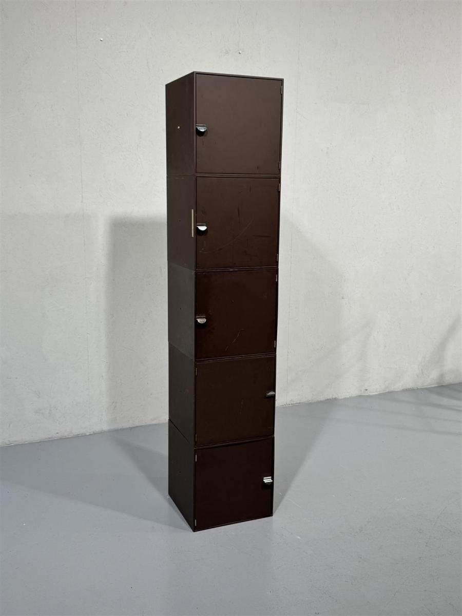 Ristomatti Ratia design klassikko Palaset sarjan lokero ovella: seinälle tai pöydän päälle asetettava. Ruskea väri, setissä yhteensä 5 kpl. Ovet avautuvat eri suuntiin. Moduulit irrallisia.
