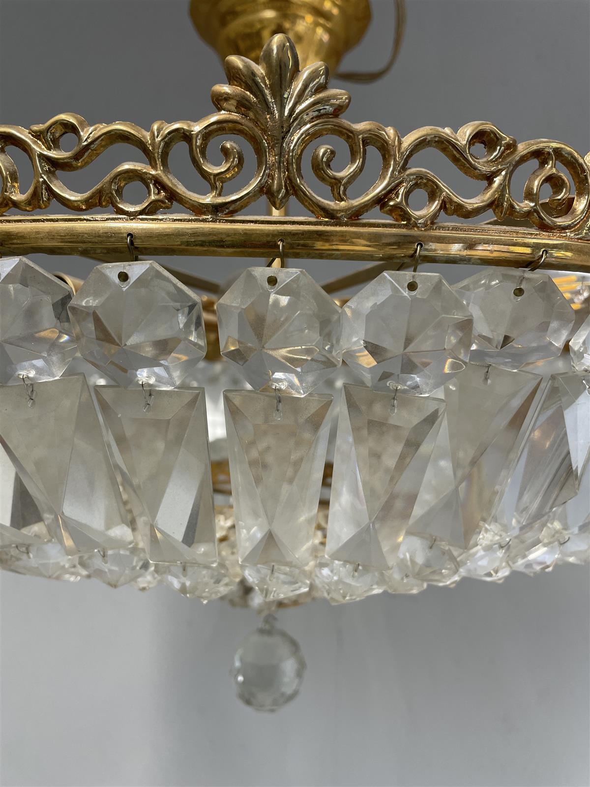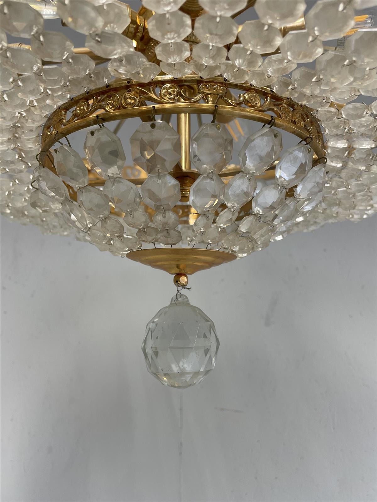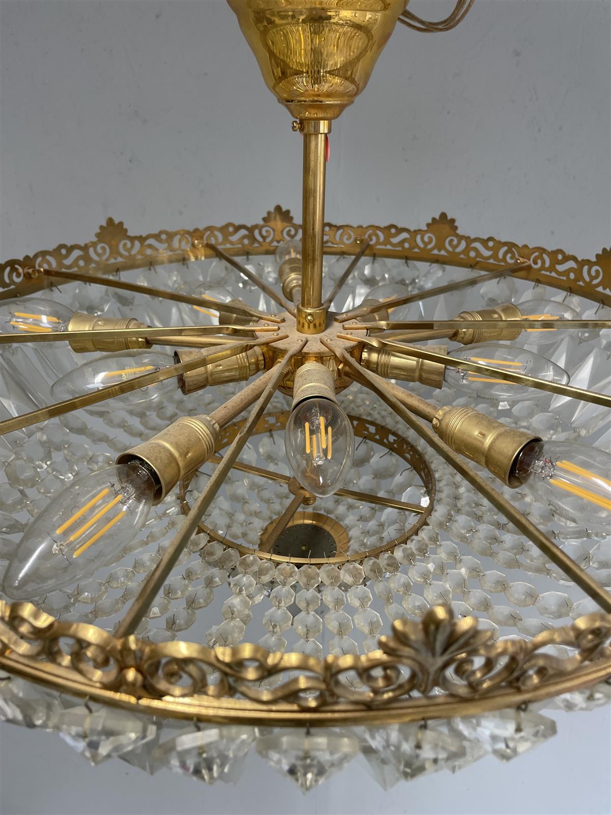 Turun Kristallin upea kattokruunu, jossa on koristeelliset messinkiyksityiskohdat ja isot kristallihelmet, keskellä roikkuva kristallipallo. 10-valaisinpistettä.
