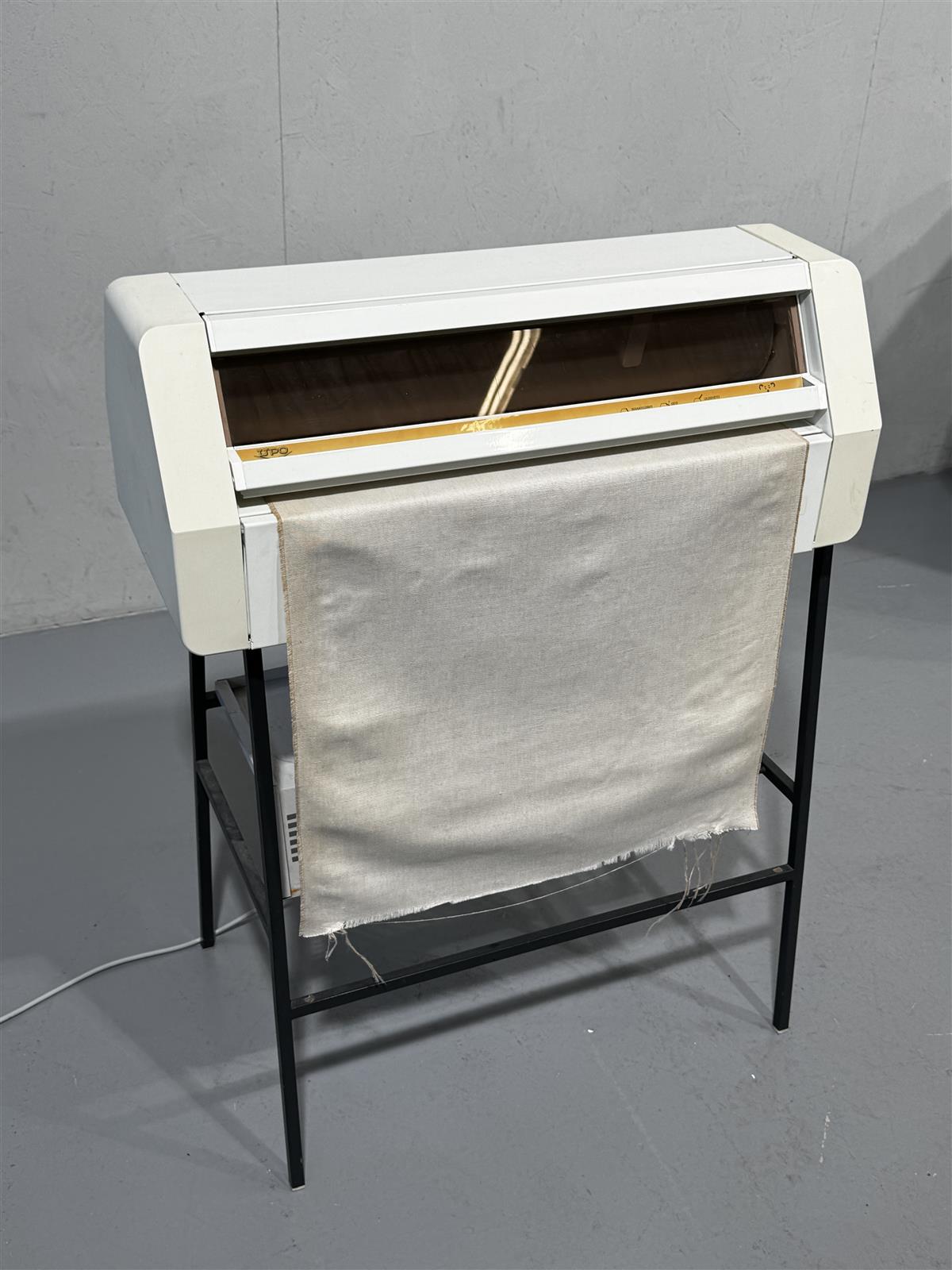 Laite on hyvässä kunnossa, mutta siinä on havaittavissa kulumaa käytön jäljiltä. Kangas lyhyt. Kone toimiva.