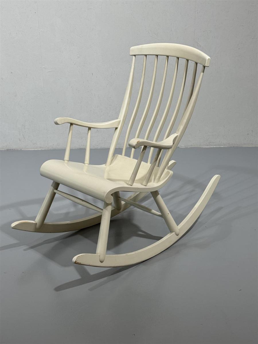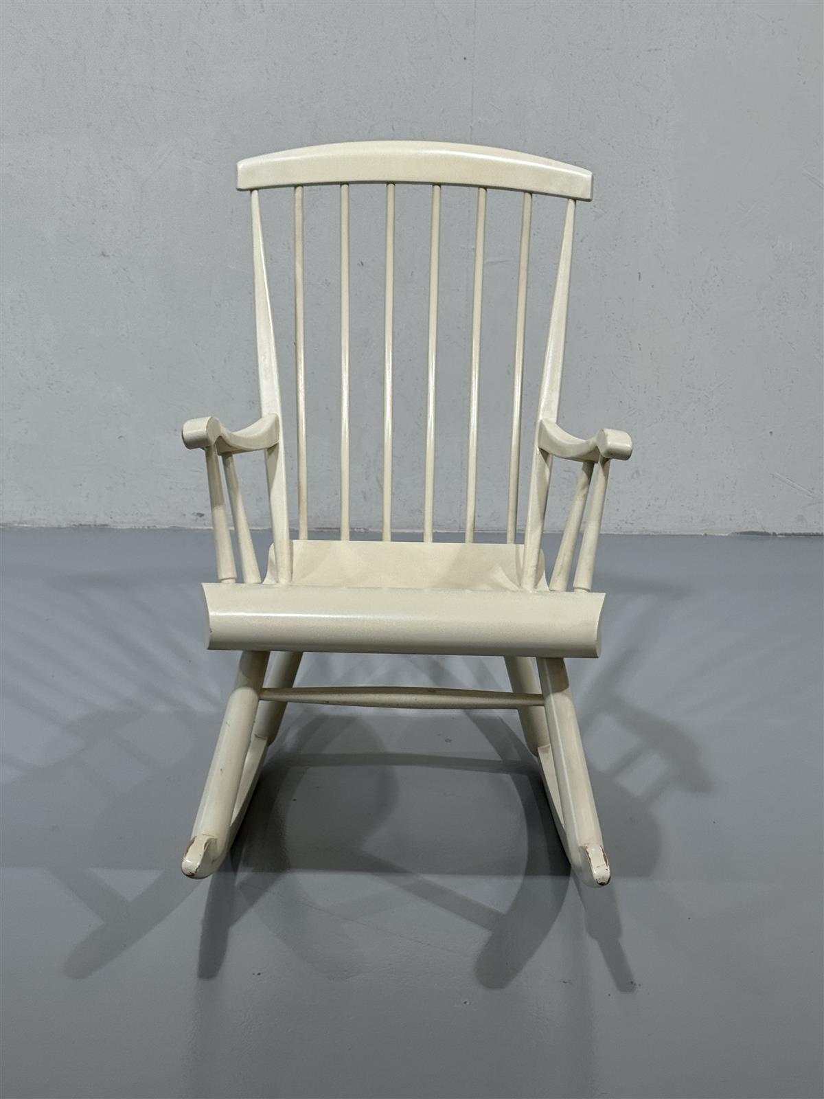 Urjalan tyylin valkoinen keinutuoli. Klassinen Suomalainen keinutuoli eli urjalan keinutuoli, hyvässä kunnossa.