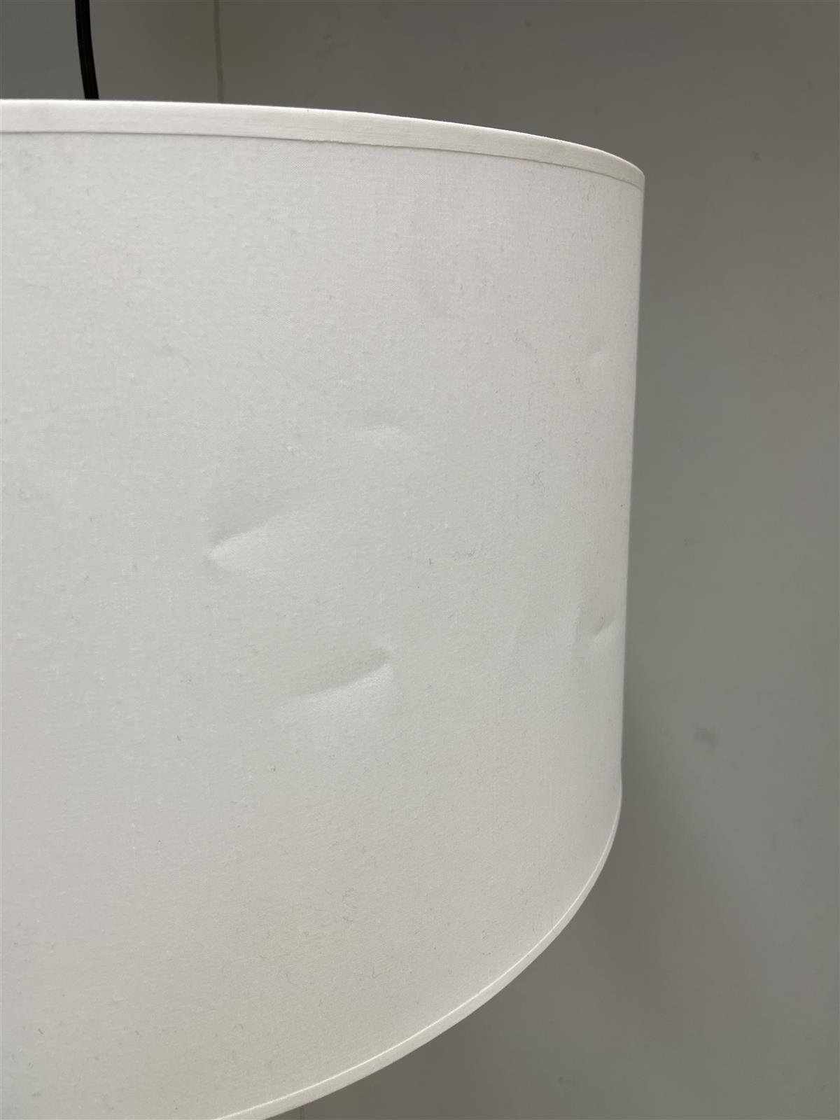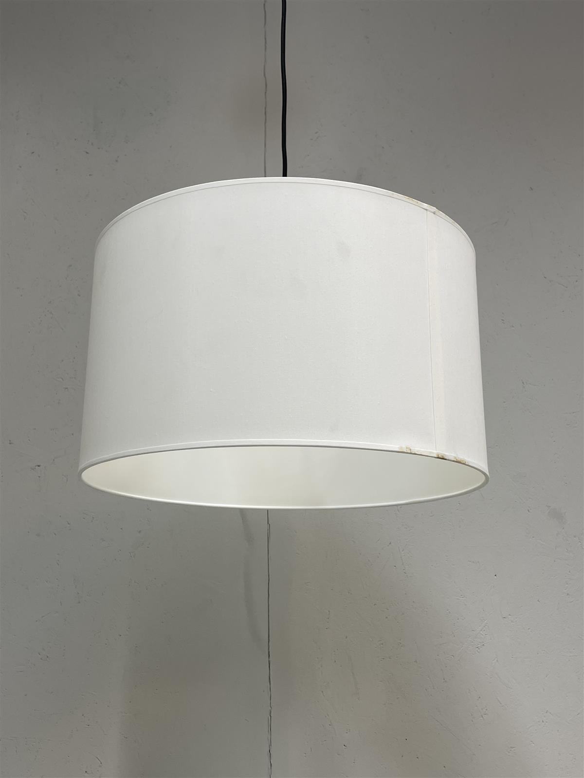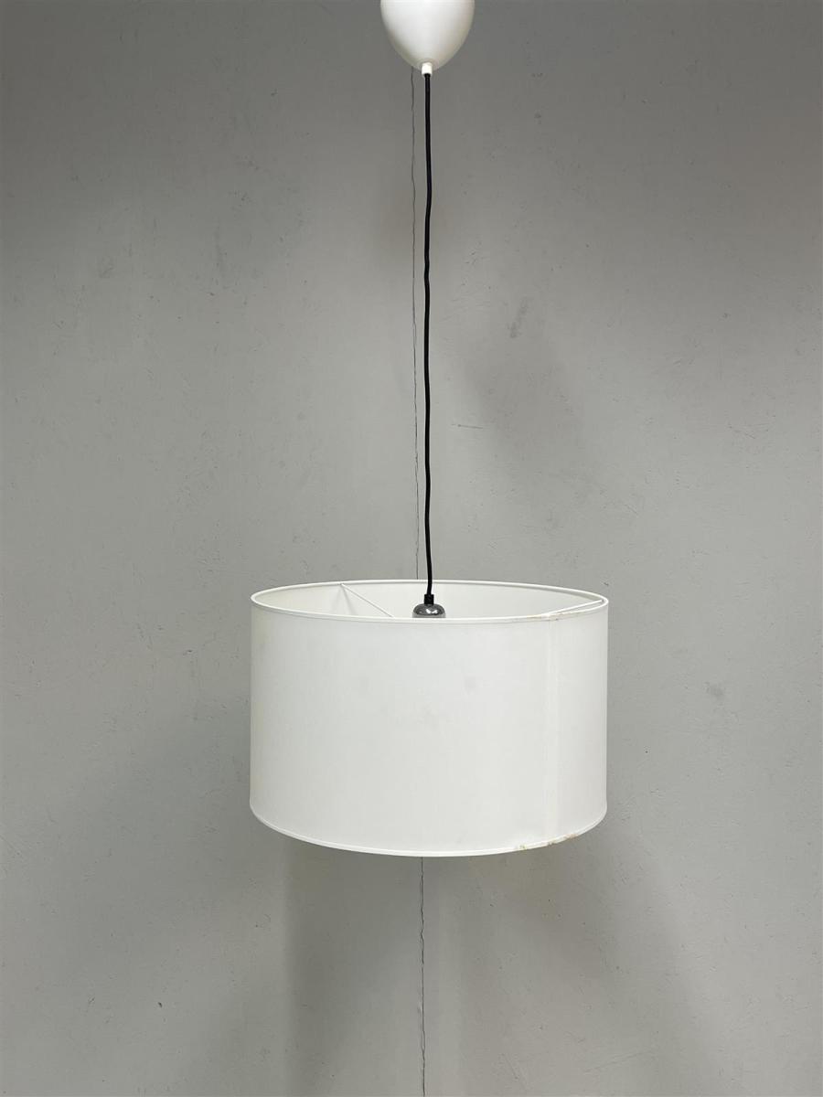 Valkoinen riippuvalaisin, jossa on yksinkertainen ja moderni muotoilu. Johdon pituutta voi säätää.