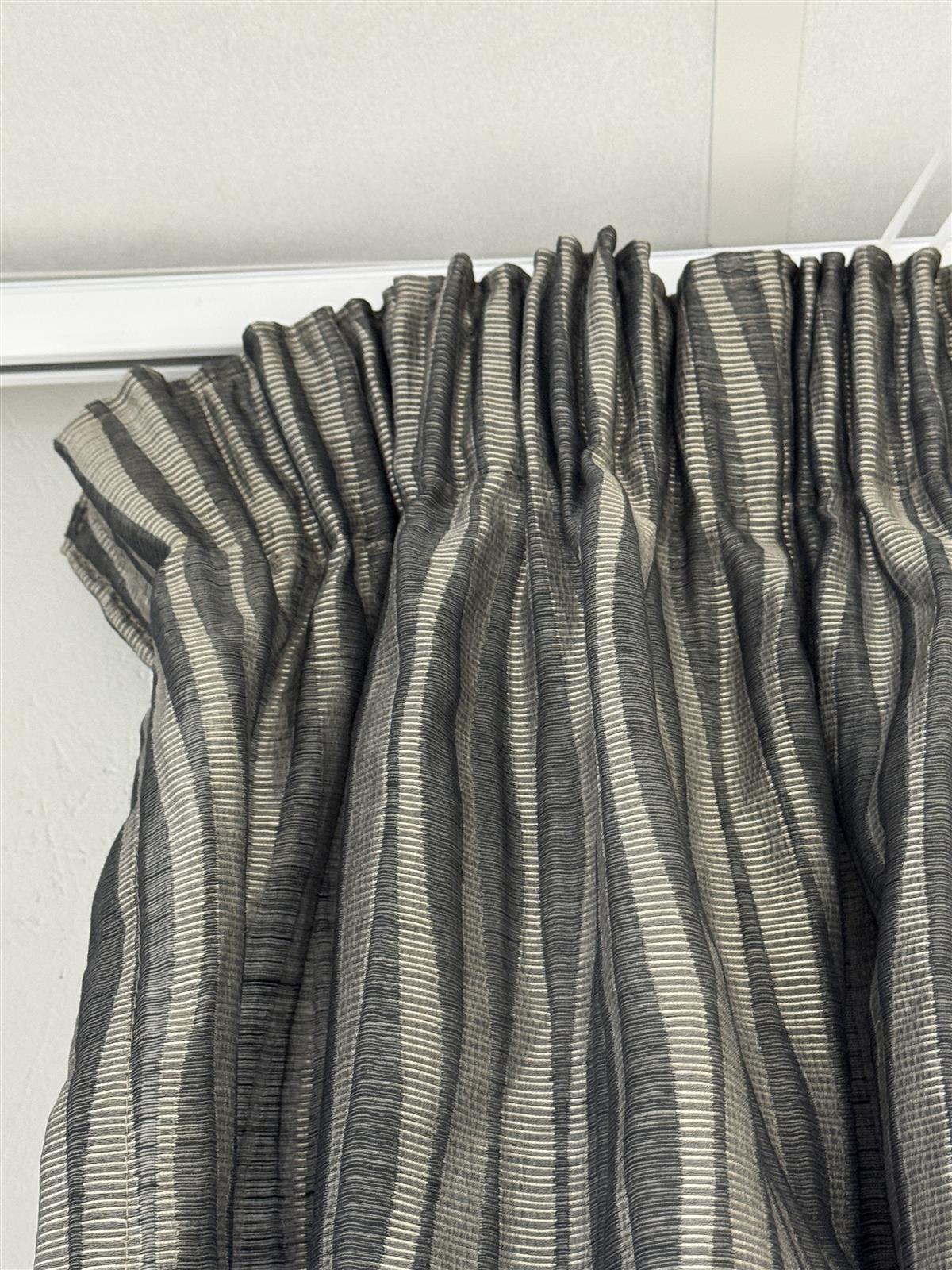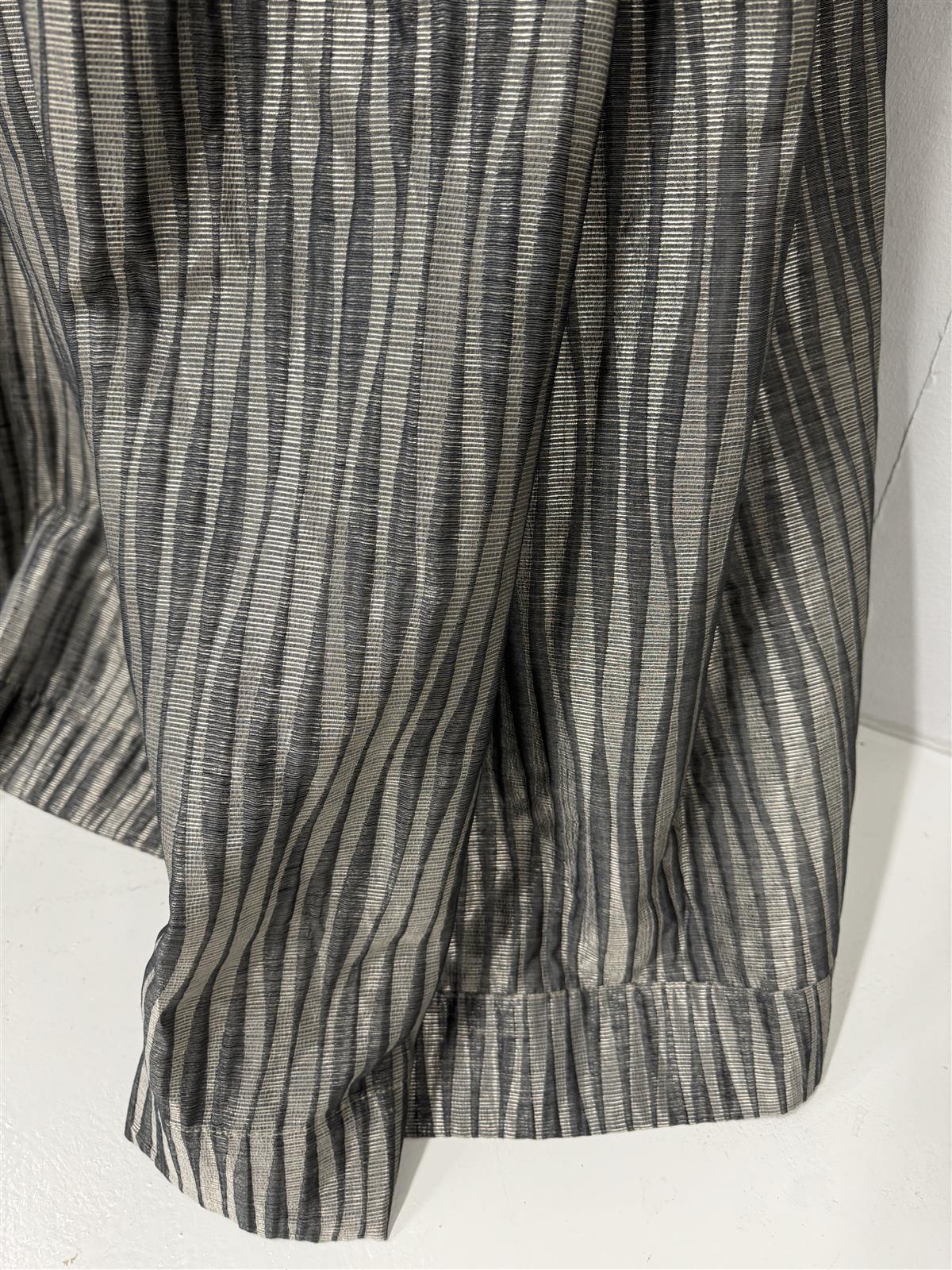Valoa ihanasti läpipäästävä, tyylikäs kultakiiltokoristeinen verho, Isokokoinen; Leveys n 400cm ja korkeus 270cm. Hinta sisältää kaksi kangasta. Rypytetty ja mukana muoviset klipsit.