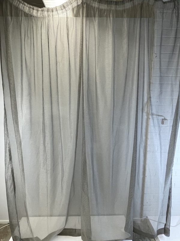 Valoa ihanasti läpipäästävä verho, väriltään kiiltelevän harmaa. Kankaassa pieni pintarakenne. Hinta sisältää kaksi kappaletta verhokankaita. Korkeus 265cm, leveys 230cm. Rauhallinen yleisilmeeltään. Rypytetty ja mukana muoviset klipsit.