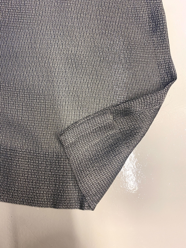 Kankaassa saattaa olla pientä virhettä, mutta silittämisellä alkaneet lankajuoksut oikenevat.