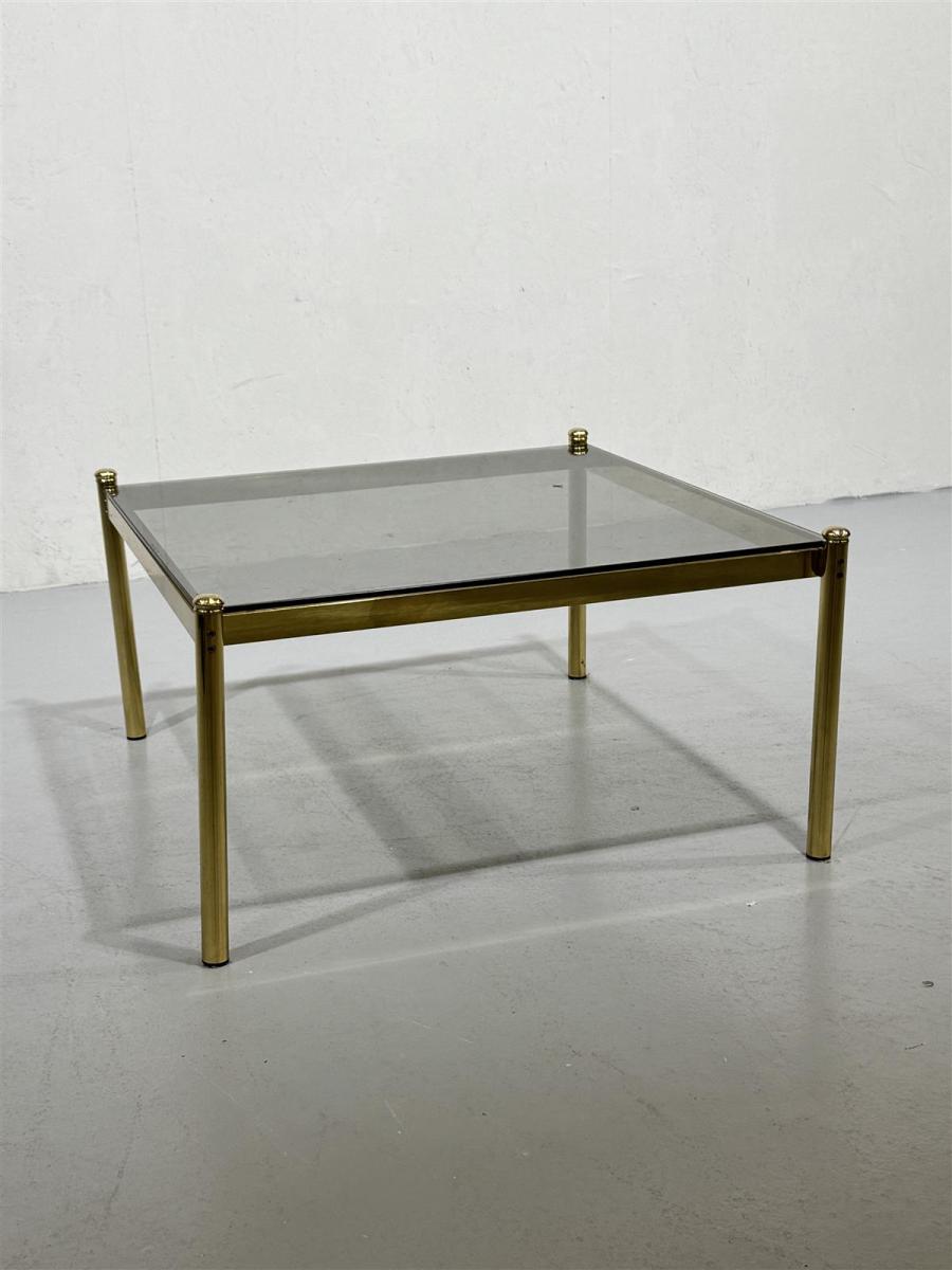 Vintage 70-luku sohvapöytä lasi ja messinki