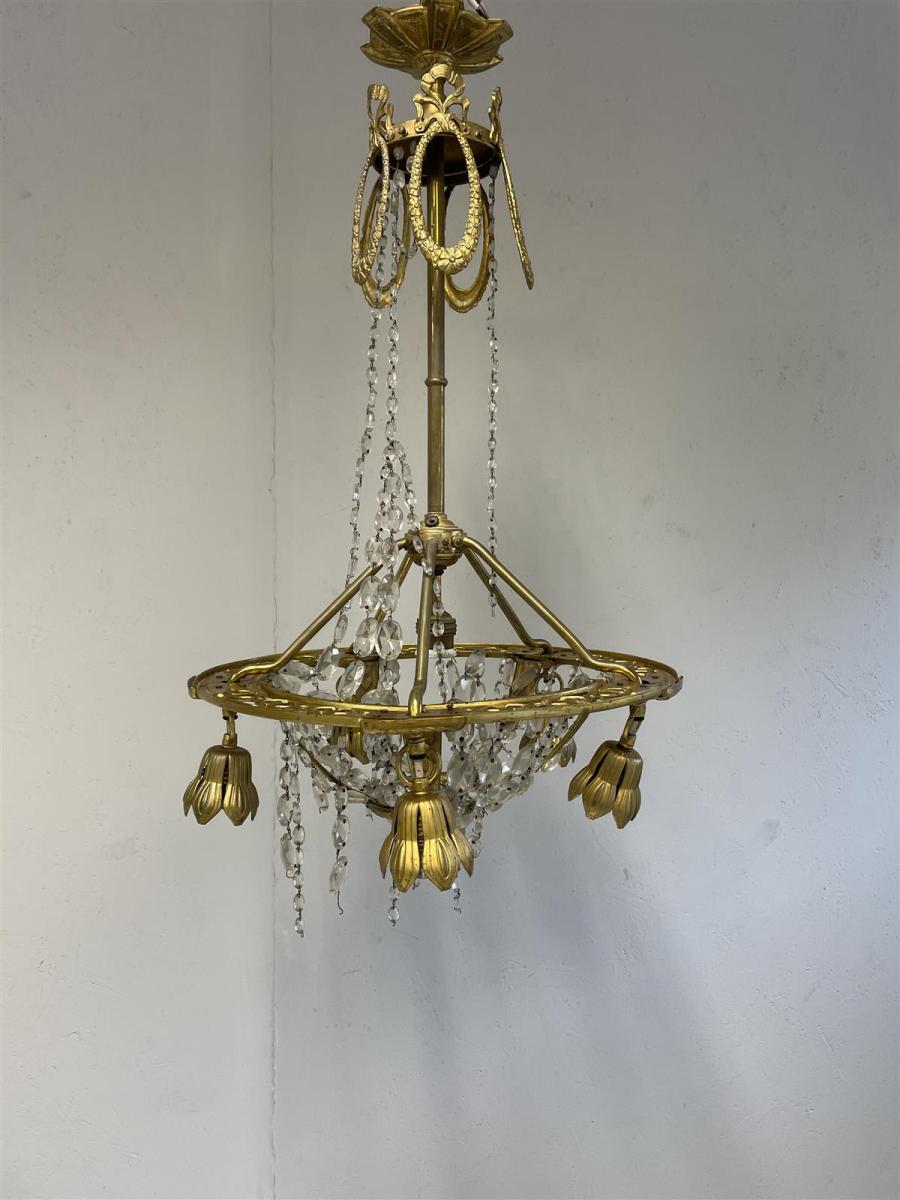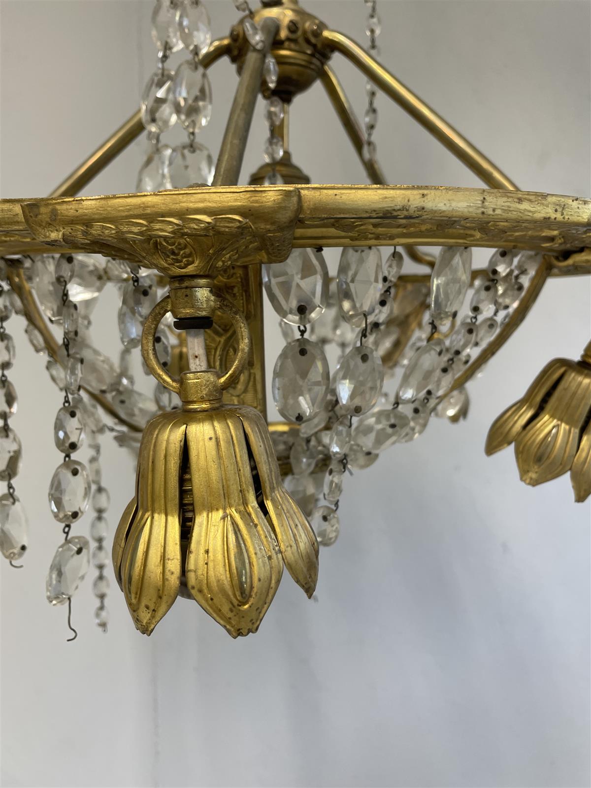 Vintage Kattokruunu kristalli ja messinki, 6-valopistettä.