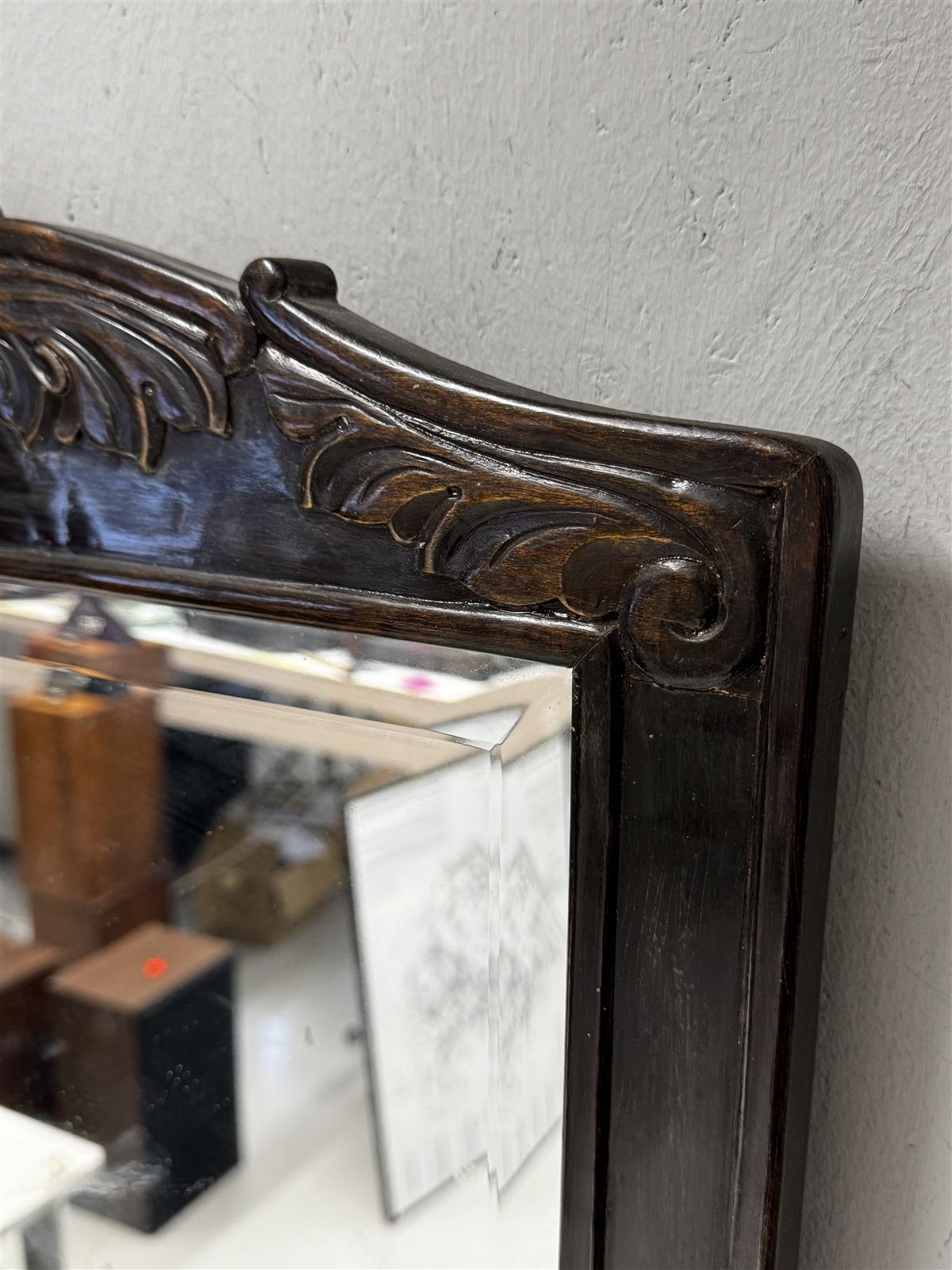 Koristeellinen vanha peili, jossa on yksityiskohtainen puinen kehys. Peilin koko on noin 55 cm leveä ja 1325cm korkea.