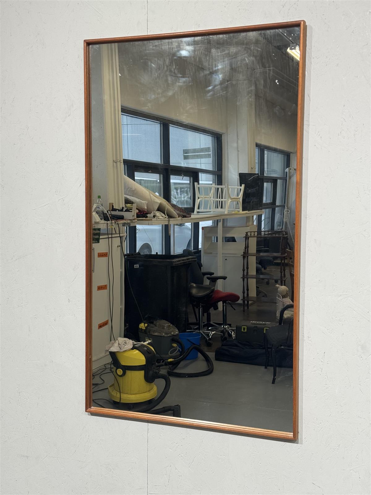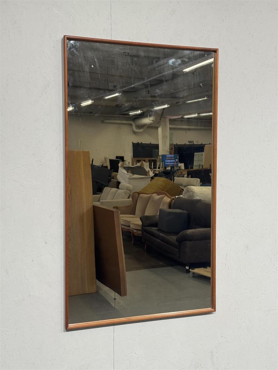 Suorakulmainen peili, jossa on kapea kehys. Kehyksen väri on ruskea.