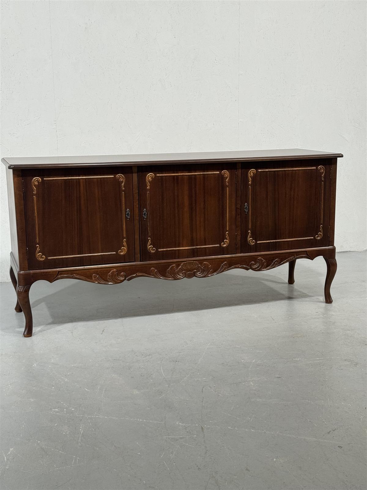 Tyylikäs rokokoo-tyylinen senkki, jossa on kolme ovea ja koristeelliset jalat. Senkissä on kauniit kaiverrukset ja koristeet, jotka tuovat esiin rokokoon aikakauden hienostuneisuuden. Valmistajaa ei tiedetä, mutta tyyli on selkeästi rokokoo, joka oli suosittu 1700-luvulla ja tunnettu koristeellisuudestaan ja eleganssistaan.