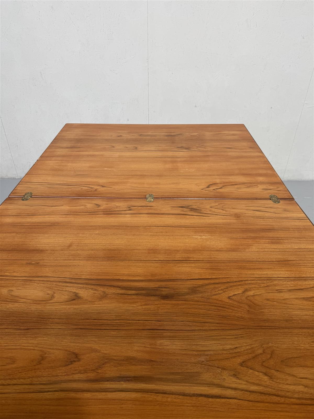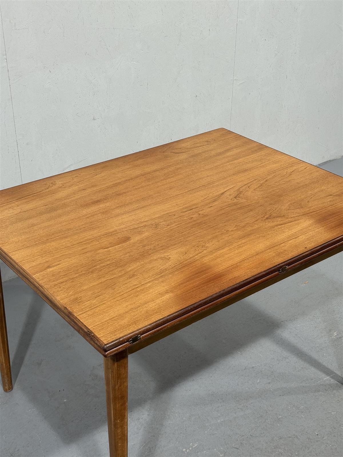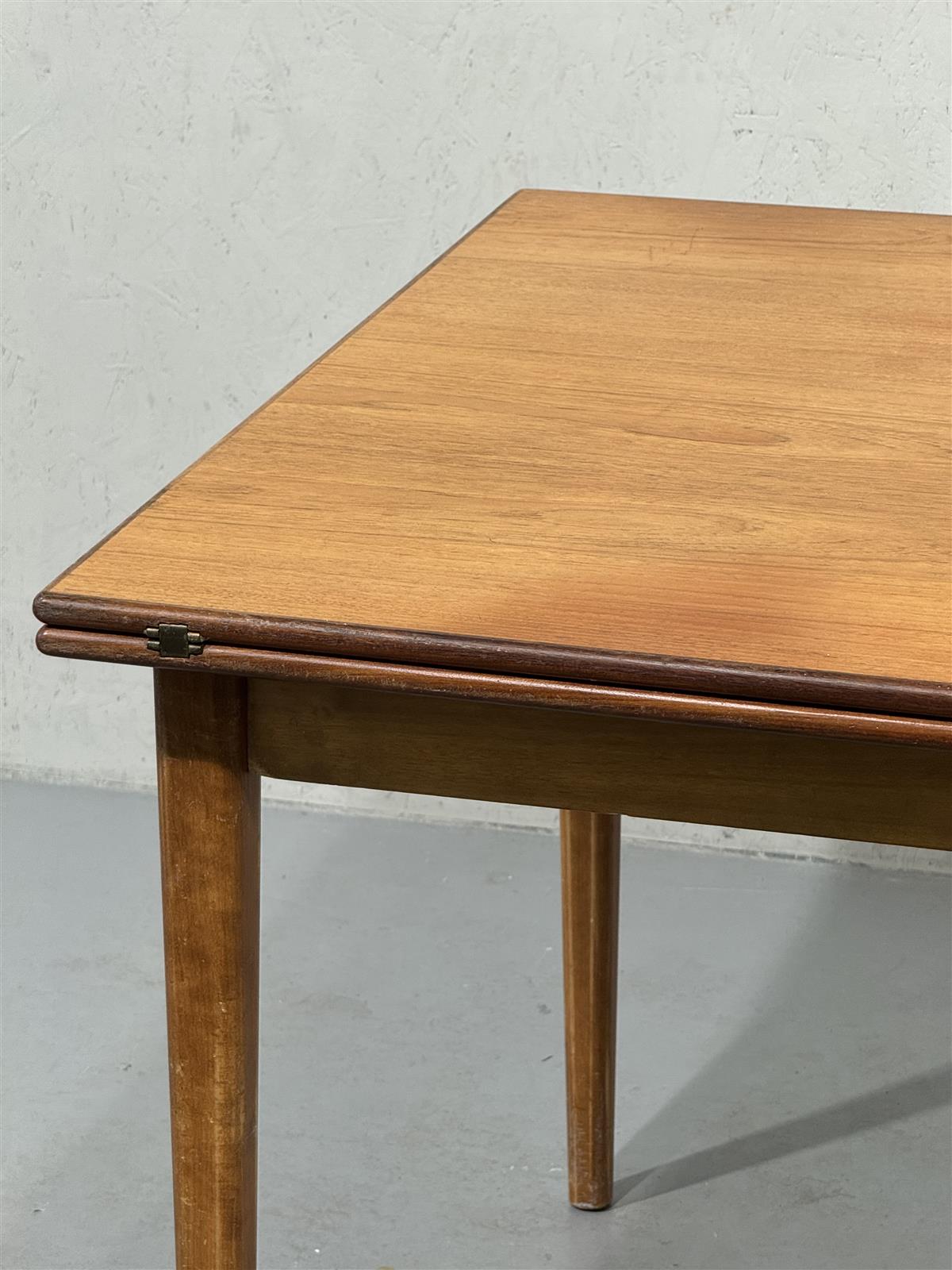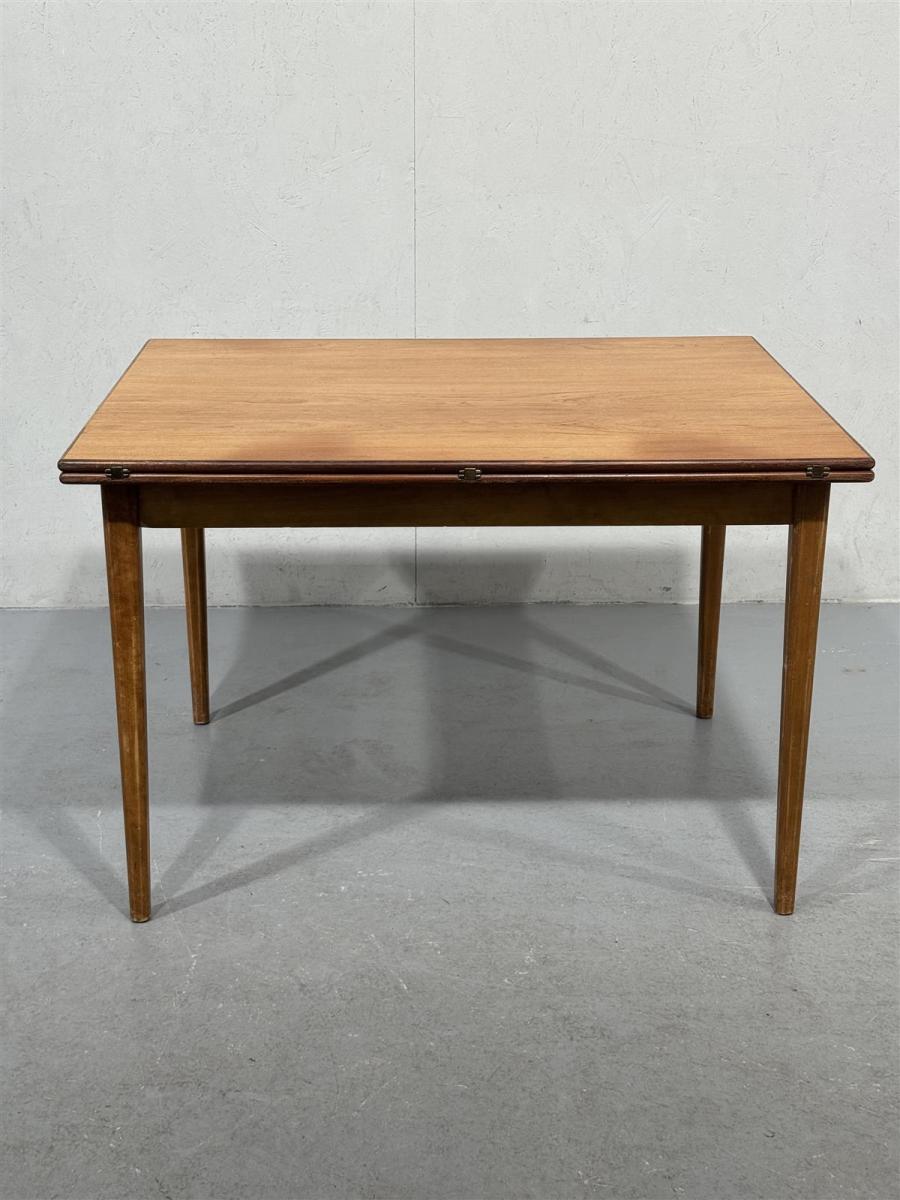 Vintage-tyylinen ruokapöytä, jossa on suorakulmainen muoto ja neljä suoraa jalkaa. Ei jatko jalkoja mukana.