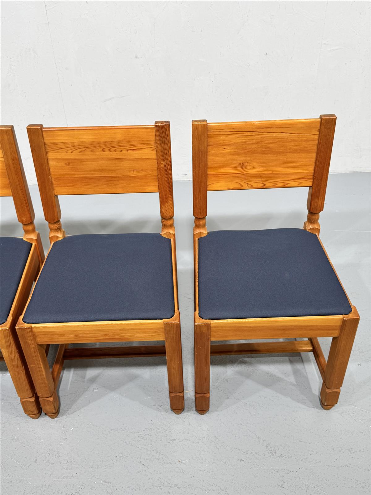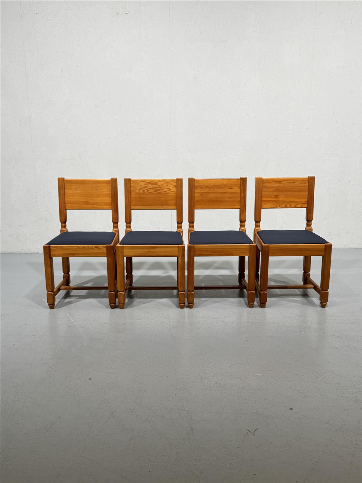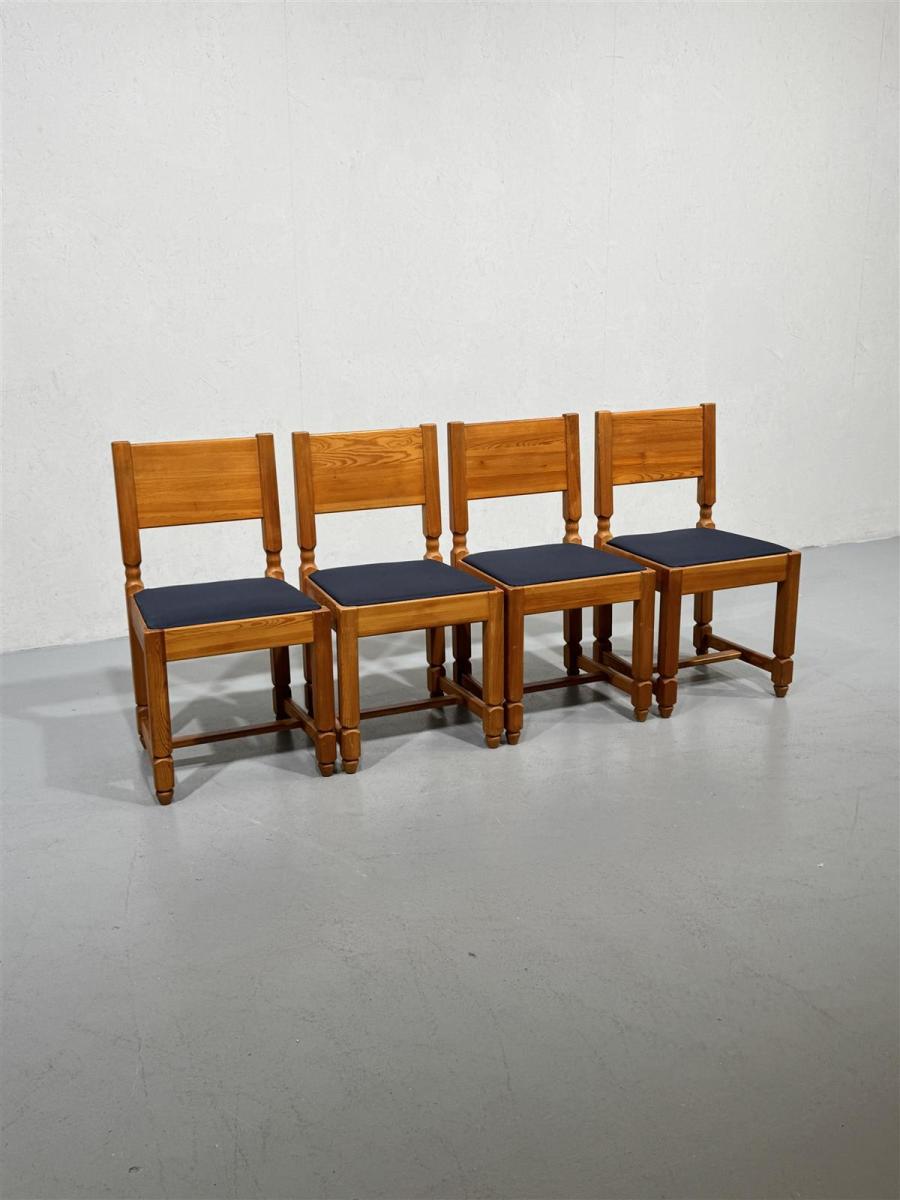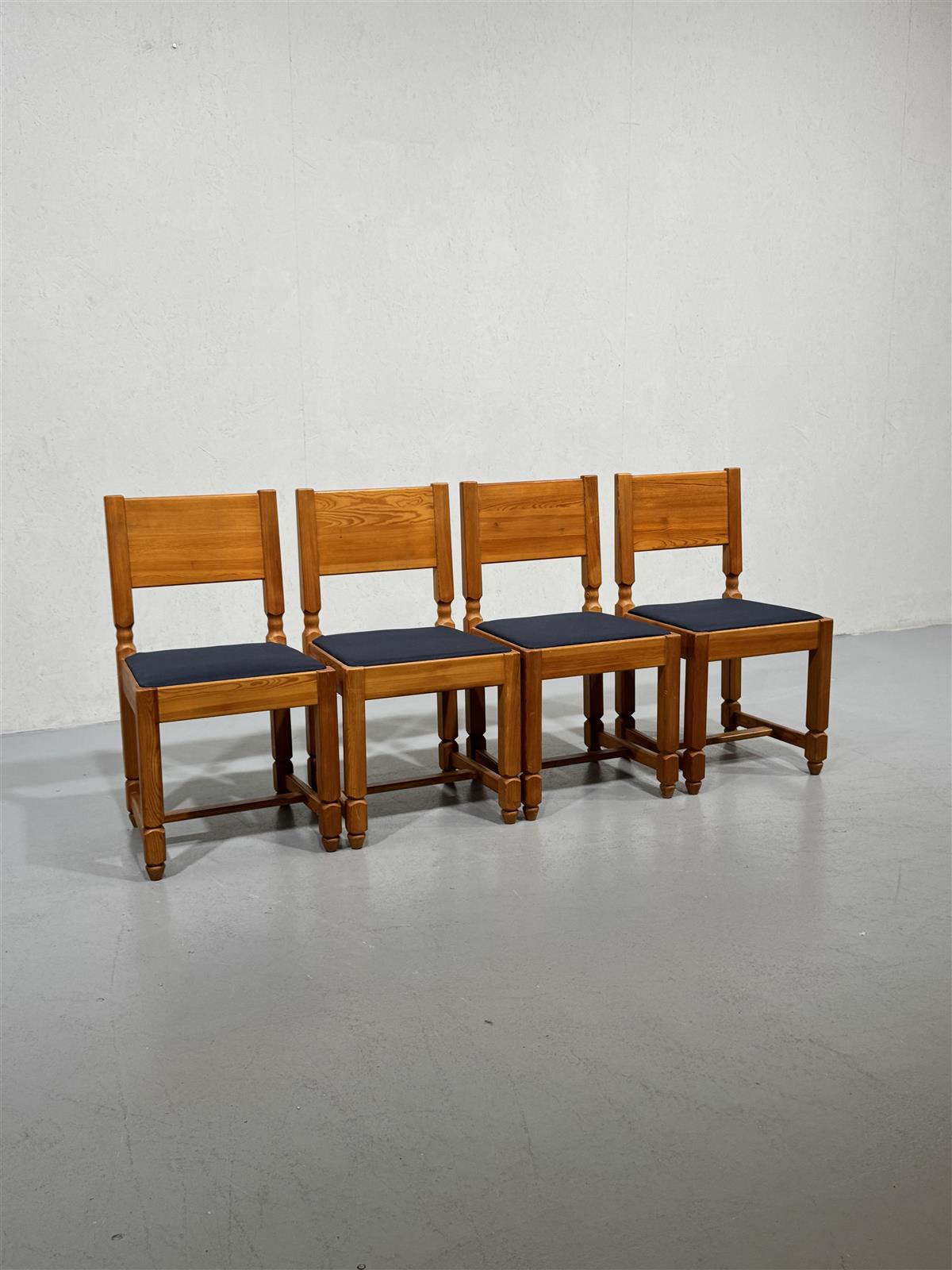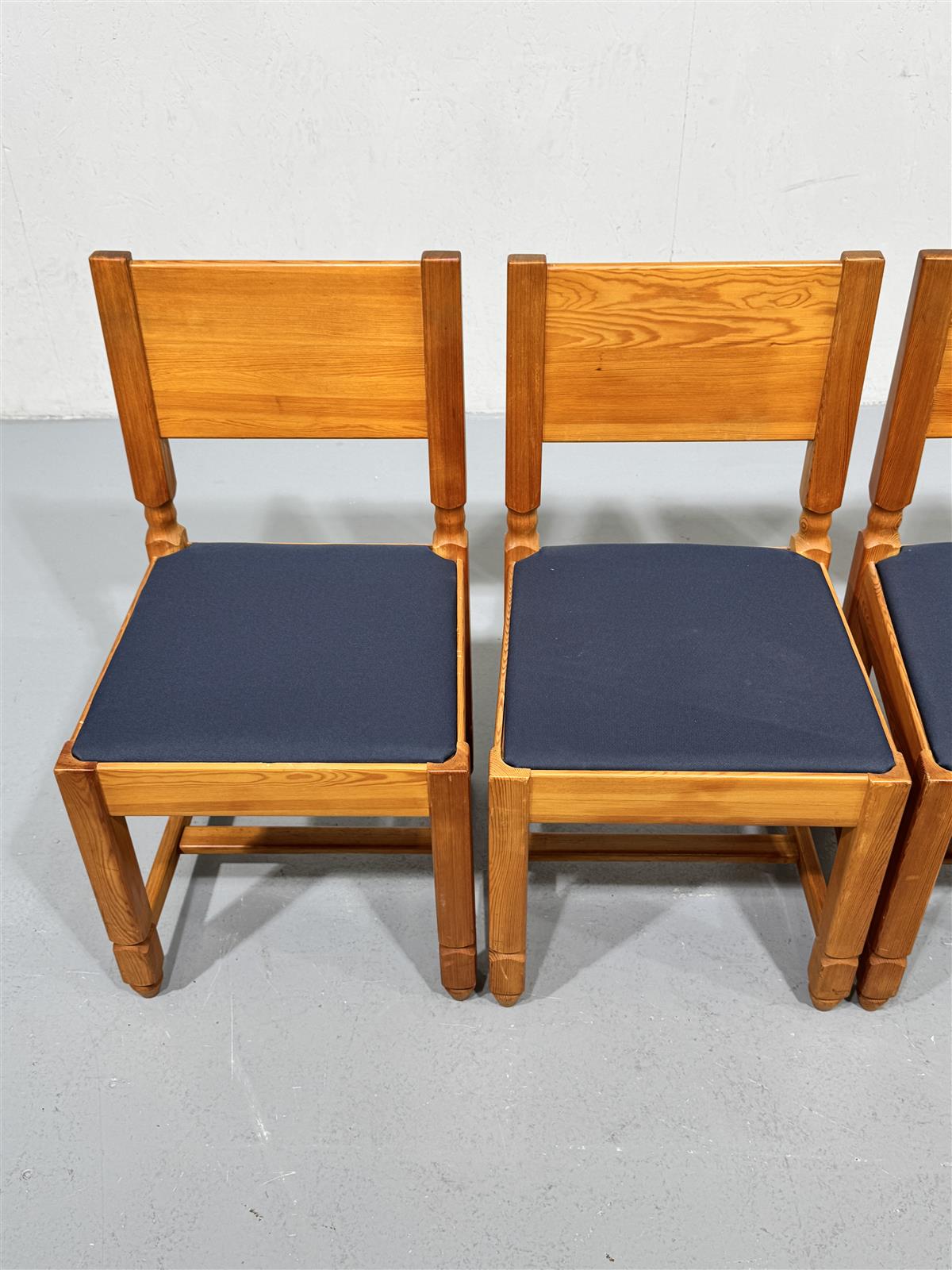 Kuusi kpl (kuvassa vain neljä, mutta kauppa sisältää 6 kpl) talonpoikaistyyliä edustavaa tuolia, joissa on mäntypuurunko ja siniset, vettä hylkivät istuinpehmusteet. Tuolit ovat jykeviä ja niissä on selkeälinjainen muotoilu, joka tuo mieleen perinteisen suomalaisen käsityötaidon. Puuosat ovat lämpimän ruskeat ja istuinosat tummansiniset, mikä luo miellyttävän kontrastin.