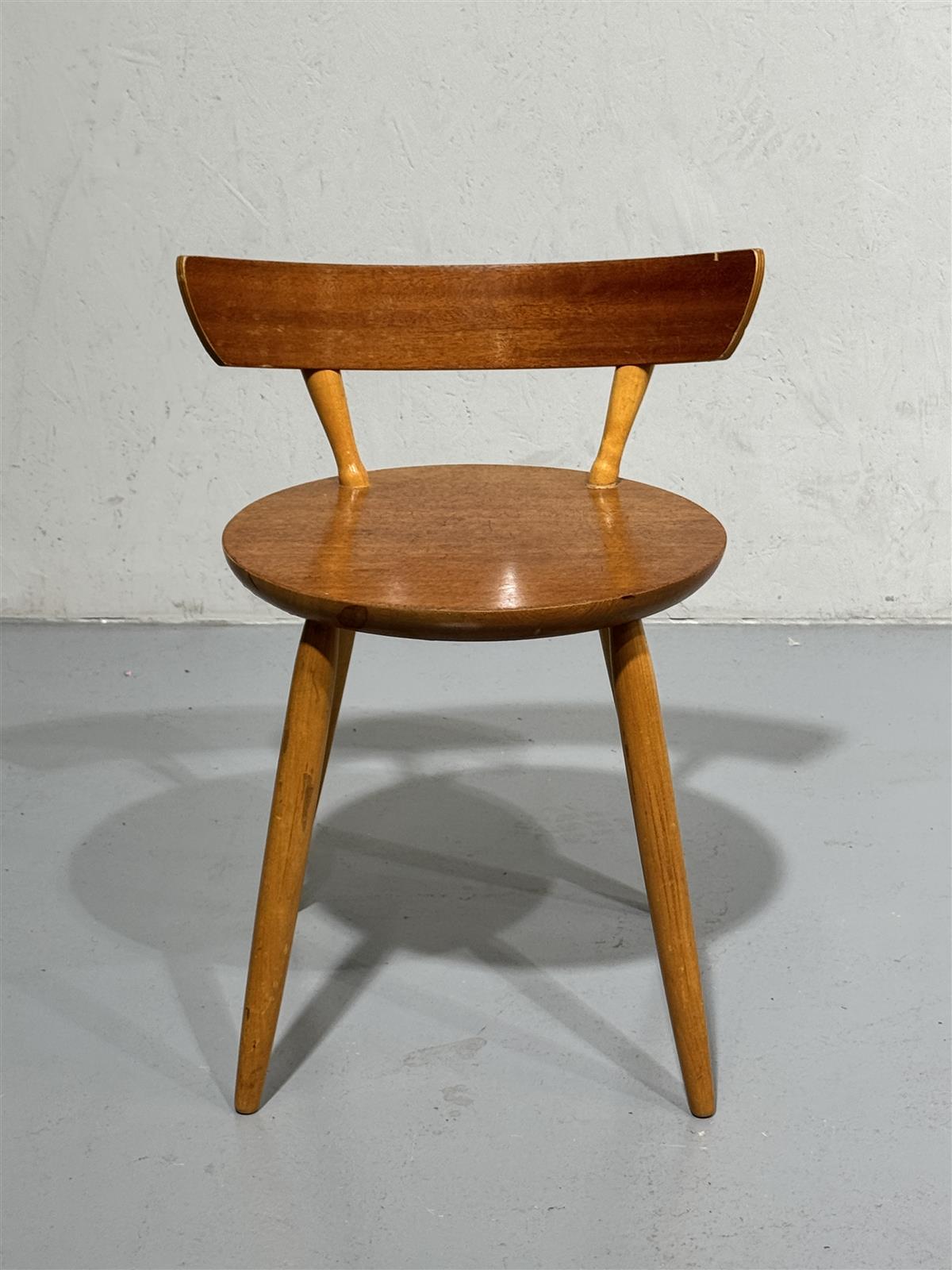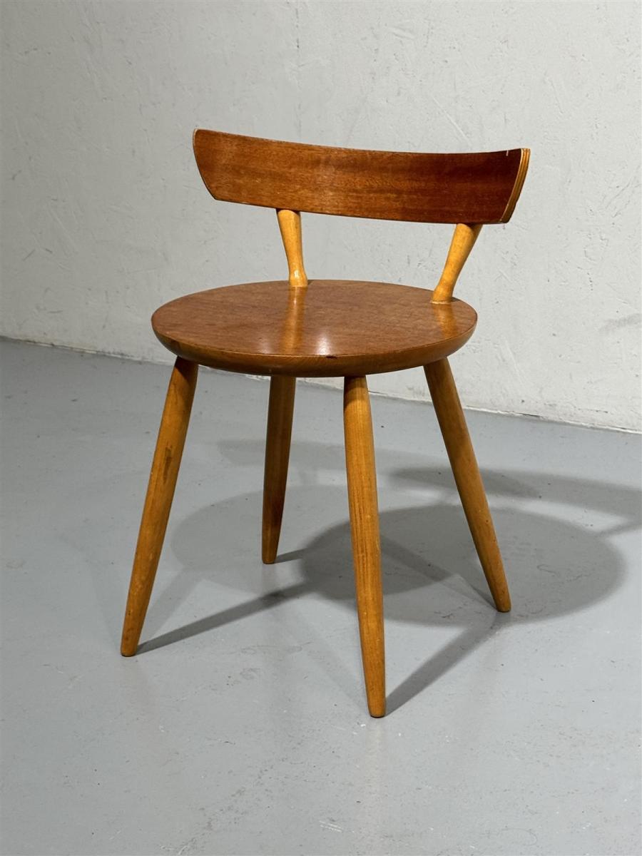 Tyylikäs 60-luvun tiikkituoli, jossa on pyöreä istuin ja selkeälinjainen selkänoja. Valmistaja ei tiedossa (mahdollisesti Ruotsi Ferdinand Lundqvist), mutta muotoilu on ajalleen tyypillinen ja yksinkertaisen kaunis. Tiikkipuu tuo lämpöä ja luonnollisuutta sisustukseen.